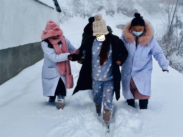据介绍,降雪导致路面积雪达40厘米,先行出发的救护车被困半路无法返回。由于救护车离蚂蟥箐村委会较近,救援人员找来雨鞋、裹脚布,两名村医和卫生院产科医生背起药品,艰难跋涉7公里才到达产妇身边。“当时,孕妇即将生产,就算有医生,在家生产也很危险,所以必须先把产妇运送出去,我们想方设法创造条件打通道路。”救援人员介绍,大家找来4条防滑链,开上皮卡车和运输车,在大雪中探路前行。