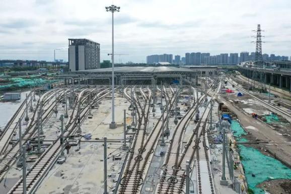2月23日,佛山地铁三号线逢沙停车场正在施工作业。/吕润致摄
