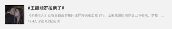 话题度方面,每逢更新必登上社交平台热搜已不是什么新鲜事。根据节目官方的统计数据,《半熟恋人》大结局仅两日便斩获全网152个热搜,光光是微博热搜就高达111个。#王能能罗拉亲了#这一话题更是引发全网CP粉狂欢。