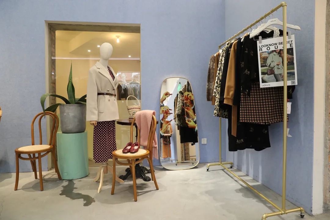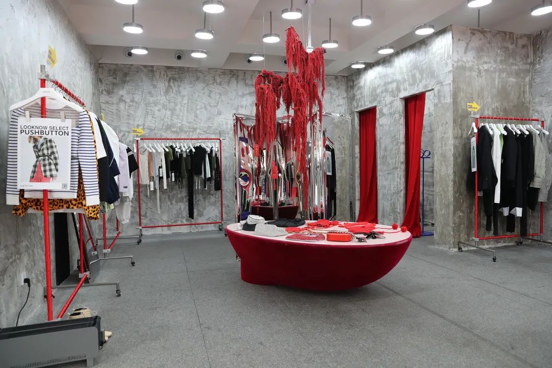 作为集合店品牌,LOOKNOW并没有像单一品牌那样通过突出系列、单品的方式来进行各种形式的陈列,而是以最简单的挂通(一种陈列方式),尽可能容纳更多的品牌和产品,供消费者挑选搭配,较于传统买手店呈现出来的面貌,货品陈列相对比较密集,可以为顾客呈现沉浸式购物体验。