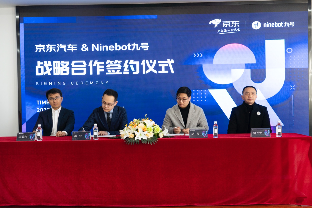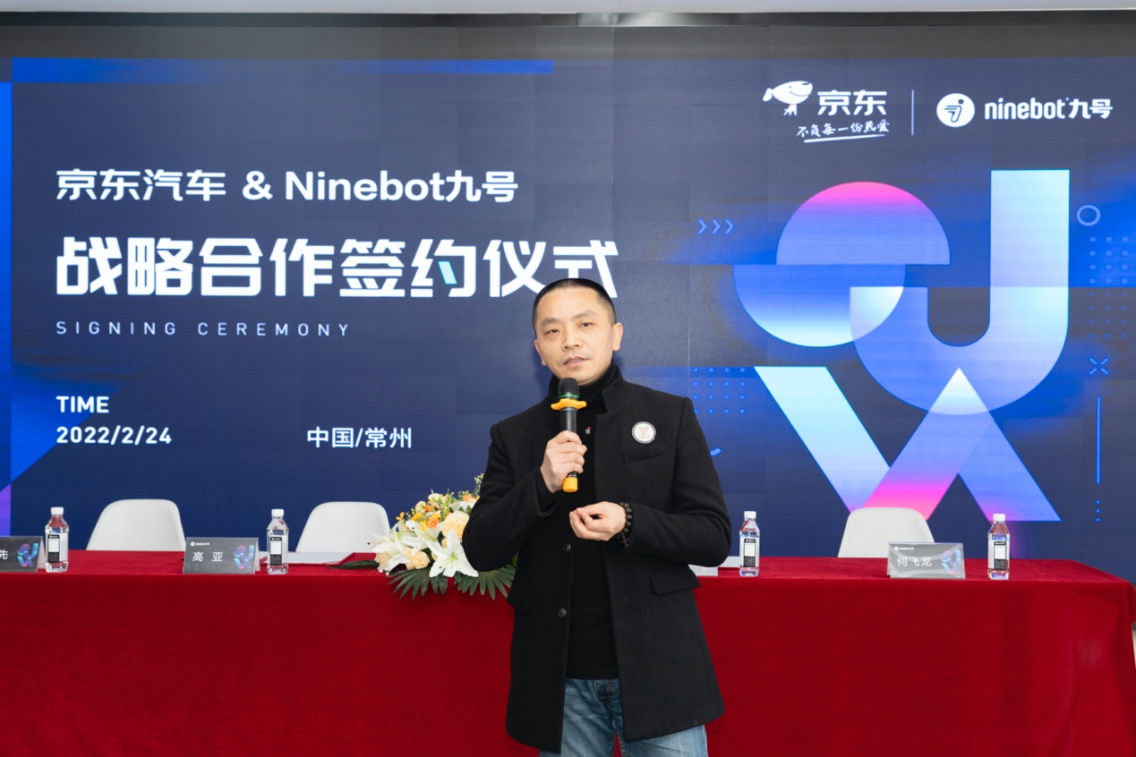 为实现智慧经营,依托双方优势,共同探索新零售模式的新思路、新方法与长远发展之路,2022年2月24日,九号电动与京东汽车在江苏·常州达成战略合作。京东二轮出行业务部总经理王敏先先生,京东电动车及装备业务部总监高亚先生,九号电动车事业部营销中心总经理何飞龙先生,九号电动车事业部营销中心电商部负责人胡彬先生等工作人员出席了此次签约仪式。