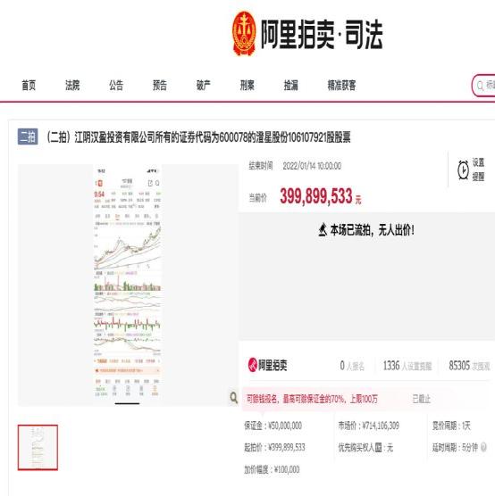 汉盈投资所持公司股份于2022年1月30日10时起60日(延时除外)进行公开变卖。