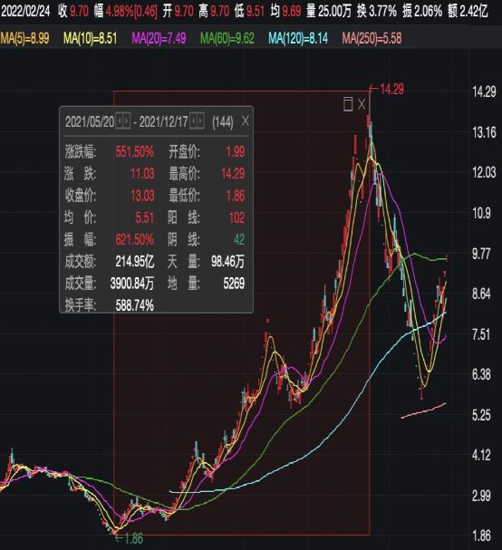 站在磷化工概念的风口,也吸引了资金的炒作。*ST澄星从去年5月份1.86元/股的价格一路飙涨至14.29元/股,股价累计涨超550%,堪称最强妖股。不过今年来该股先跌后涨,节后再次实现8连板,股价快速拉升。虽然公司多次发布风险提示公告,但依然难挡资金热情。