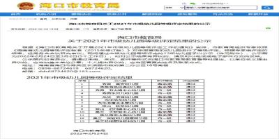 2月24日,海口市教育局公示关于2021年市级幼儿园等级评定结果,13所幼儿园通过海口市级幼儿园等级评定。