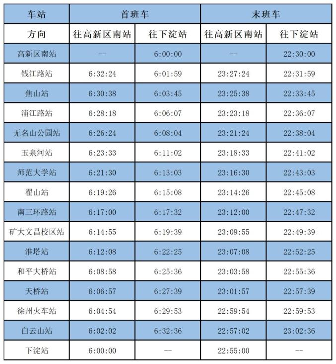 调整后,各线路两端站首班车发车仍为6:00,1号线、2号线末班车时间延长至22:30,3号线上行(高新区南往下淀方向)末班车时间延长至22:30,3号线下行(下淀站往高新区南方向)末班车延长至22:55。同时对各线路行车间隔进行了优化调整。
