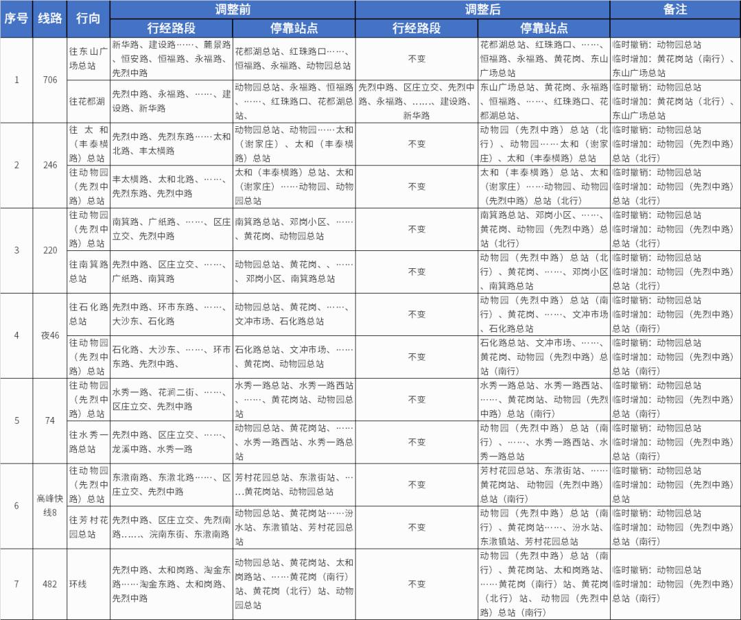 (一)根据公共汽车动物园总站地块建设需要,临时撤销该总站,在该总站以南约200米处先烈中路两侧临时增设公共汽车动物园(先烈中路)总站,临时调整原停靠公共汽车动物园总站的公共汽车706、246、220等线路至动物园(先烈中路)总站、东山广场总站运营。