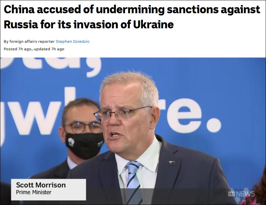 ABC报道:莫里森指责中国破坏了针对俄罗斯的制裁