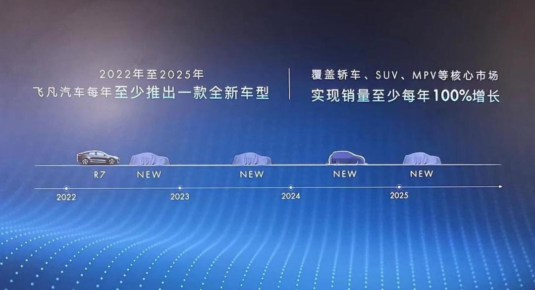 在共创会上,吴冰称首款新车飞凡 R7 今年将实现 10,000 辆的交付目标,此外飞凡汽车在 2022—2025 年每年至少推出一款全新车型,覆盖轿车、SUV、MPV 等核心市场,并且希望到 2025 年,飞凡汽车能成为具备盈利能力的中高端智能电动汽车头部企业。