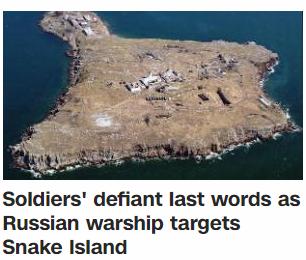 “这是人们从岛上听到的最后一句话”,美国有线电视新闻网报道称,它显示当莫斯科继续袭击乌克兰领土时,黑海一个小岛上的乌克兰士兵在面对俄罗斯军舰炮击的威胁时并没有退缩。