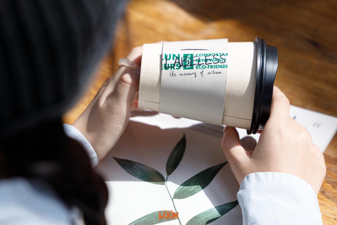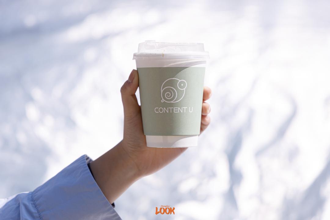 Content U Coffee的杯子是淡淡奶油绿,背面是他们的slogan「苦咖拥抱方糖和牛奶,拥抱你的日出与日落」。