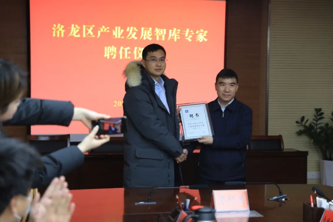 签约仪式后,张玉杰向韵达集团高级顾问、中云达董事长、创始人张国敬授予洛龙区智库专家聘书;区投资促进中心、龙丰公司、龙兴公司、龙鼎公司、龙合公司等相关单位主要负责人与韵达集团人力资源产业园项目相关负责人就产业基金、投融资业务、乡村富余劳动力灵活用工方面进行了深入交流。