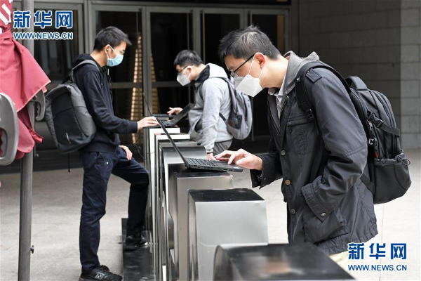 在深圳平安金融中心,企业员工在楼下使用笔记本电脑连接公司内网下载安装远程办公软件,以便实现居家“云办公”。新华社记者 梁旭/摄