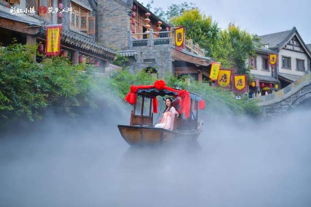 雪山彩虹谷因“晴天幽谷绘彩虹,一览天上人间”而得名,以浪漫的彩虹文化为主题,在氤氲水雾中,营造出不同于江南的烟雨风情。