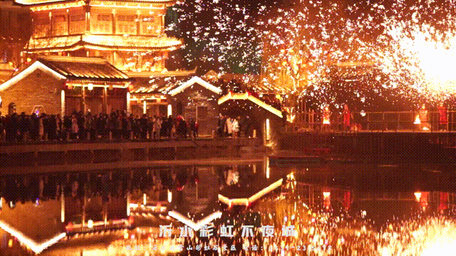 千年非遗打铁花也在这里上演,一朵朵“钢花”像流星般在天空绽放,随即又跌入水面,形成了一幅震撼又唯美的夜晚限定。
