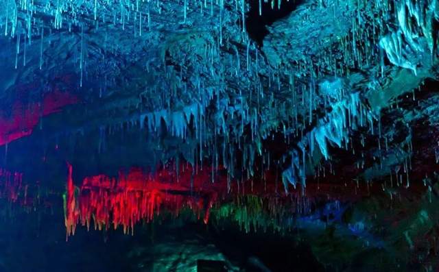 整个画廊气势磅礴,五彩的灯光恰到好处地点缀其间,各类象形钟乳石参差错落、千姿百态,将百万年来的神秘地理画卷展现在大家眼前。