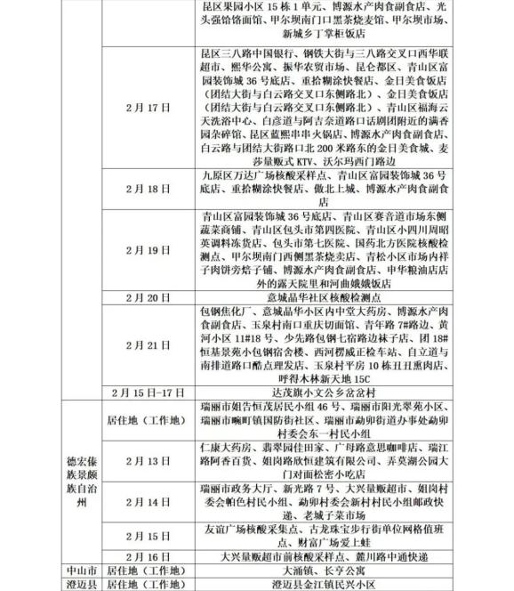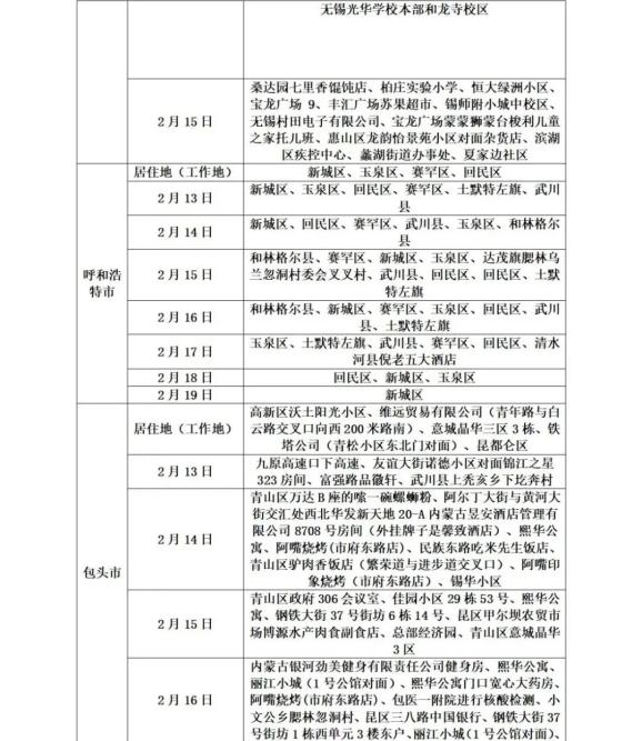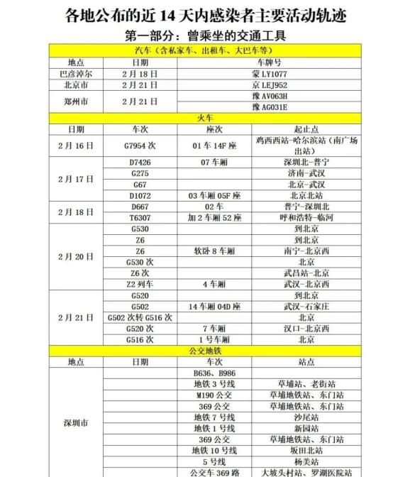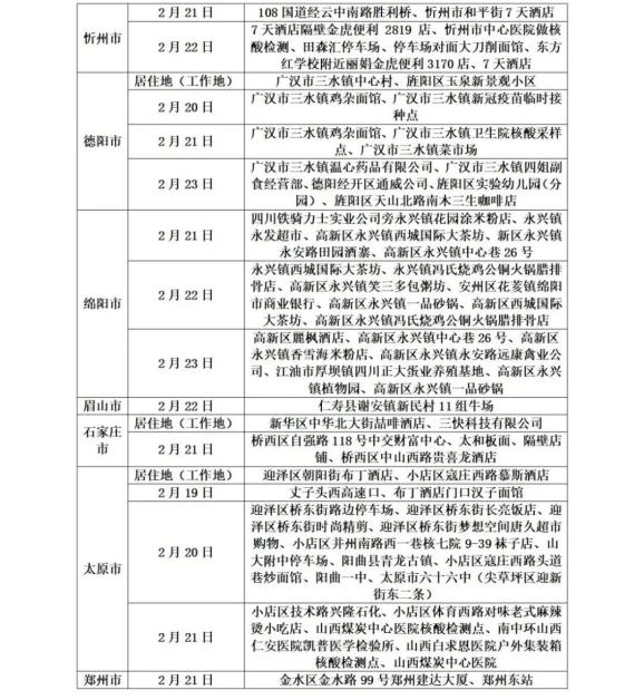 备注:已公布的中高风险区所在县(市、区),不再逐一列举轨迹涉及的具体地点。