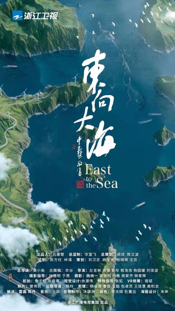 《东向大海》是浙江广电集团出品的重点纪录片,分为三集,每集50分钟,分别是《瞰潮》《探海》《乘风》。第一集《瞰潮》,以“天上宏观视角”,上天入海,记录东海超级工程建设的重要历史节点;第二集《探海》,以“水中微观视角”,探索秘境,记录东海自然资源的艰难修复历程;第三集《乘风》,以“地上中观视角”,穿越时空,展示新时代东海人勇立潮头、与自然和谐共生的故事。
