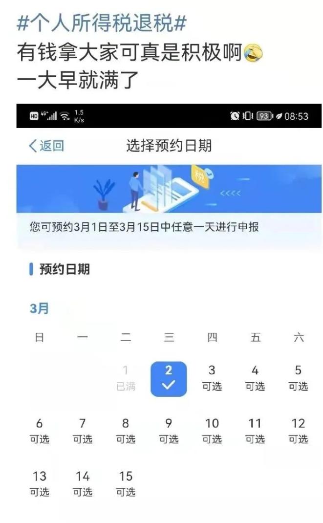 “3月起床第一件事,先给自己退个税”“美好的3月从退税开始”“感觉像发了年终奖!感谢国家!三月都有干劲了!”“意外之喜,可以买买买了”……