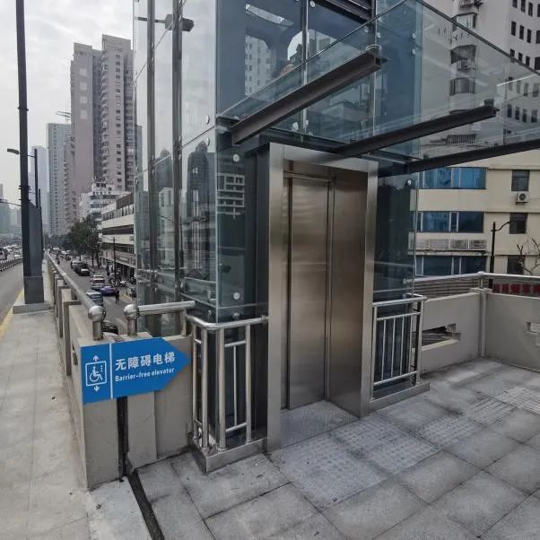 电梯内同步增设了新风系统、视频监控、盲文按钮、电子音箱等设施。同时,原人行平台也进行了改造加固,人行梯道进行适老化改造,增设栏杆扶手、电梯位置指示标志等,精心打造了适老化、无障碍的友好交通出行环境。