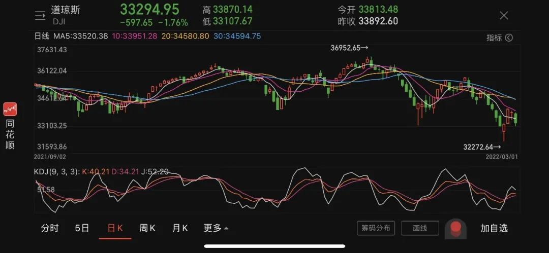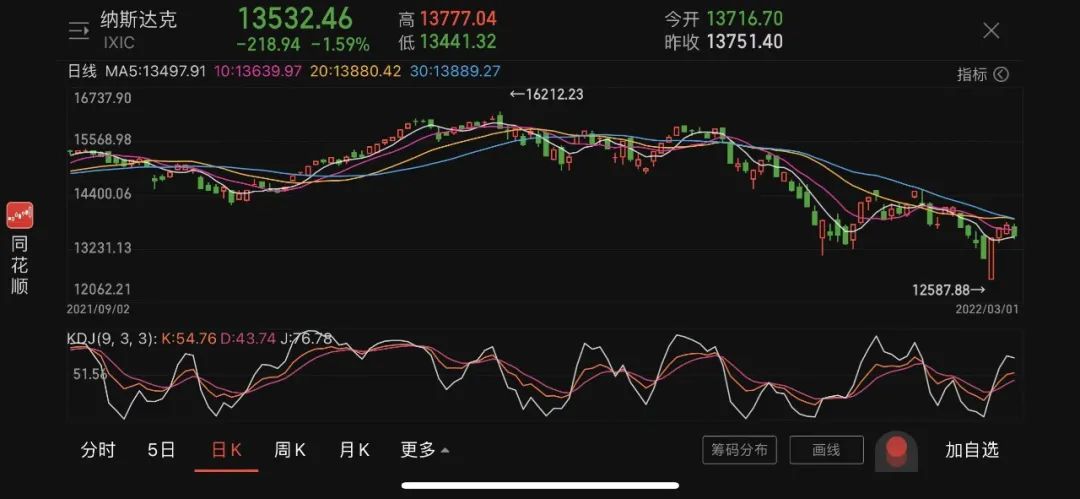 当地时间3月1日,美股三大指数集体下跌。截至收盘,道指下跌597.65点,收报33294.95点,跌幅1.77%;纳指下跌218.94点,收报13532.46点,跌幅1.59%;标普500指数下跌67.68点,收报4306.26点,跌幅1.55%。