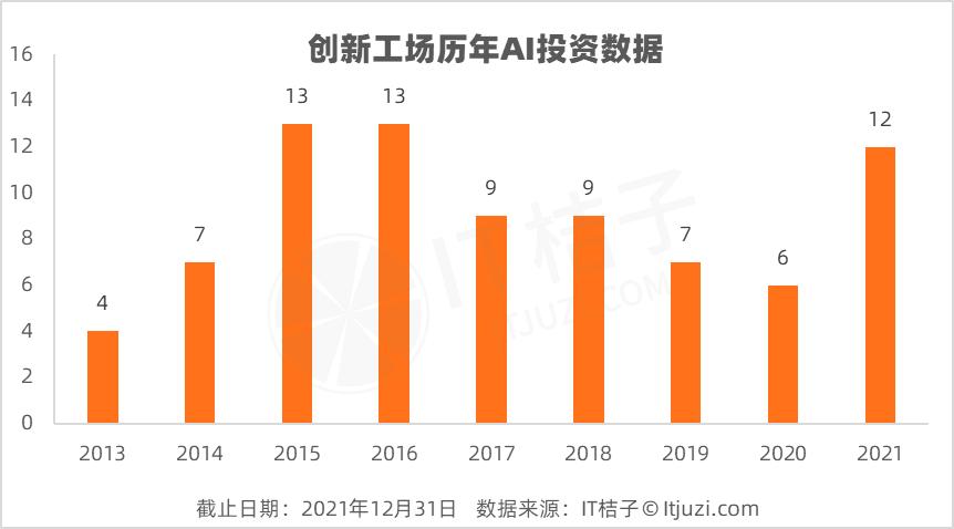 成立于 2009 年 9 月创新工场,目前在其官网上这样介绍自己「创新工场深耕在人工智能与硬科技、机器人与自动化、芯片/半导体、企业服务软件、医疗等领域,并不断探索与创新」,从这句话中就能看出创新工场对人工智能领域的关注度。IT 桔子数据显示,创新工场于 2013 年开始了对人工智能领域的投资布局,到 2021 年为止已经投资了 80 次。