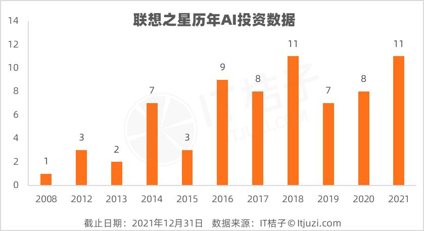 作为主要投资前沿科技、医疗健康、TMT 三大领域的机构,人工智能正合联想之星的胃口。事实上,联想之星在 AI 领域上的投资反应还是挺迅速的,公司成立于 2008 年,同年就投资了虹膜识别产品及解决方案提供商中科虹霸。此后于 2012 年开始了对 AI 领域持续性的投资,截止到 2021 年,联想之星在人工智能方面的投资共计 70 次。
