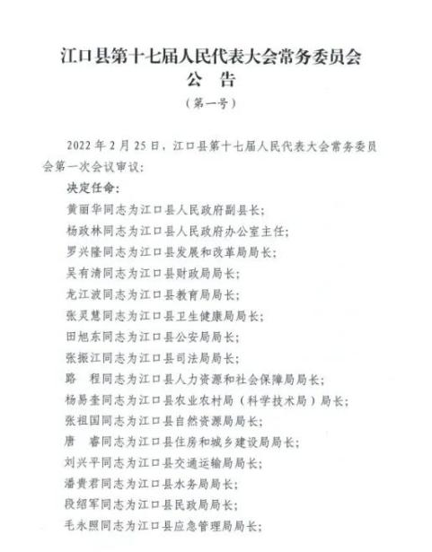 江口县第十七届人民代表大会常务委员会公告(第一号)