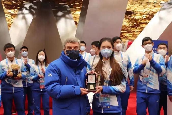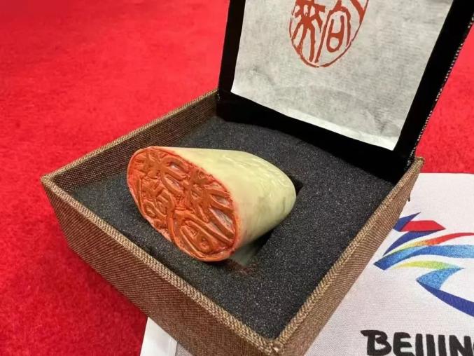 2月17日下午,国际奥委会主席巴赫来到国家体育场考察并和志愿者亲切交流,中央美术学院向巴赫主席赠送的纪念礼物——一枚中国印,正是王昭以这份看台志愿者的回忆为灵感创作出来的。