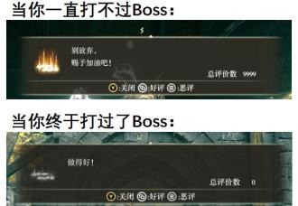有的留言则非常暖心,知道你打不过boss,在复活点前鼓励你不要气馁、再来一次;等你历经苦难终于打败boss,也有人向你提出真诚的表扬,让我们在这残酷的世界有了陪伴。