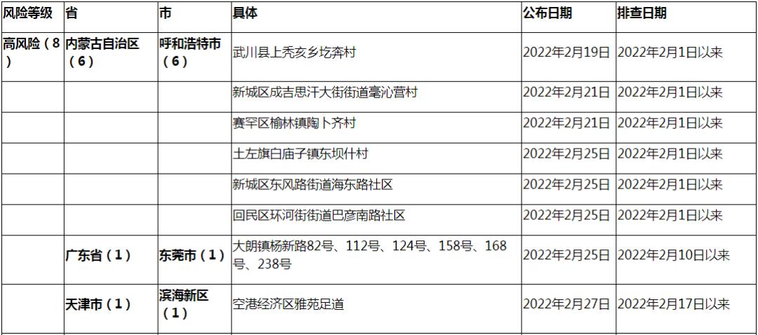 大朗镇:杨新路82号心约餐具厂、杨新路124号旭杰工业园、新太路8号、大井头社区岭南北区一巷、长盛南路72号、莞鲜生活超市(怡朗路店)、传速物流园、康隆百货(郑公涌新市场2楼)、太华城(富民中路721号)、云莲三街1巷2号君松和公寓、戴夫科技有限公司(富民南路13号)、金朗南路114号、保安墟路十二巷、斯恩科精密机械东莞有限公司(富民工业区浦京高新科技园)、农家小炒湘赣木桶饭(新马莲骏马一街10号)、云莲路168号、新佰联购物中心(佛新路12号)、金准电器厂、杨涌村郑公涌56号、郑公涌一区59号、巷尾社区南石道街88号、郑公涌怡和公寓、魔刻科技第三工厂、百仕通手袋厂。