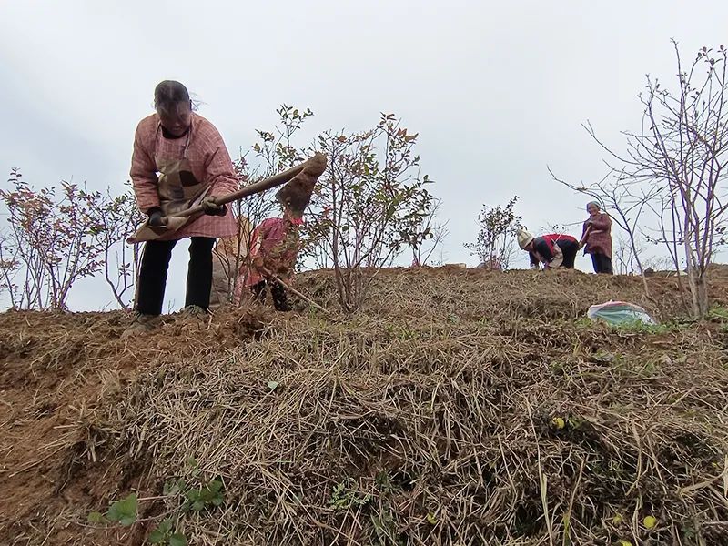板当镇硐囗村百灵生态蓝莓园村民在管护蓝莓