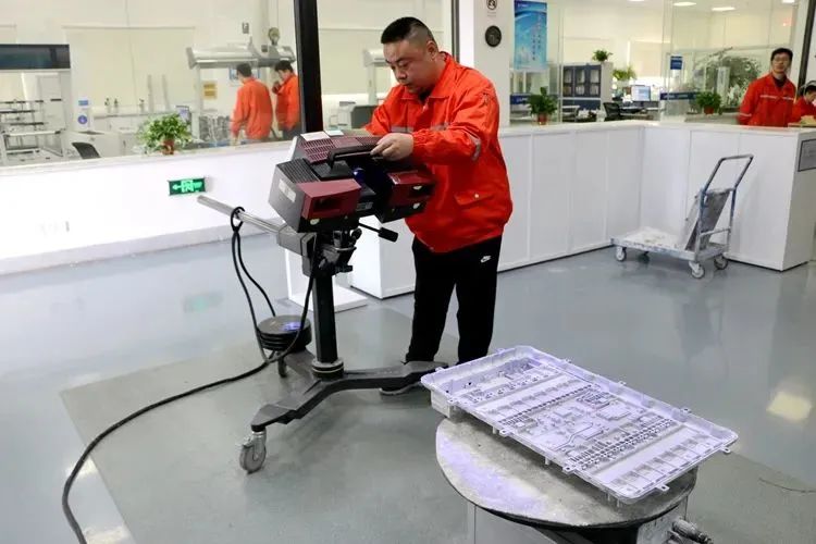 “我们通过三维扫描获得零部件表面数据,与数模进行点对点对比,知道误差值大小,完成质量检测。”皮尔博格质检科科长张敏红说,作为汽车整车生产的关键部分,汽车零部件的生产与一般制造业相似却又不同,有着更加严格的质量保证体系,“利用蓝光扫描仪对铸件进行全形状和尺寸检测分析,出具完整的测量和检验报告,可以提升铸件质量、优化高压铸造工艺。”
