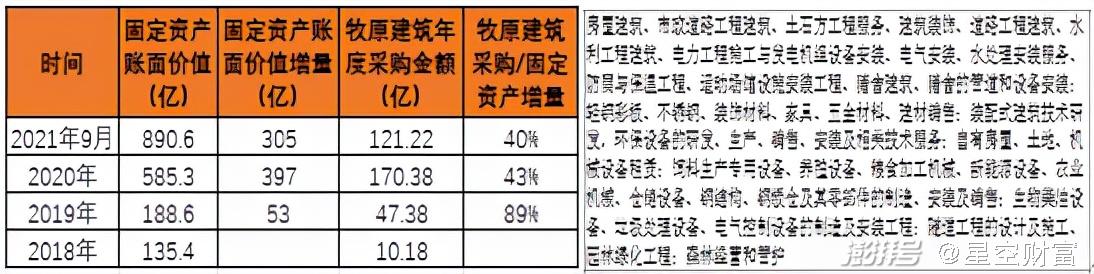 另外,更关键的问题是,2019年-2021年三季度,牧原固定资产账面价值,增量的40%以上都来自于同一家公司——牧原建筑。而从其经营范围来看,基本都是常规的工程建筑。