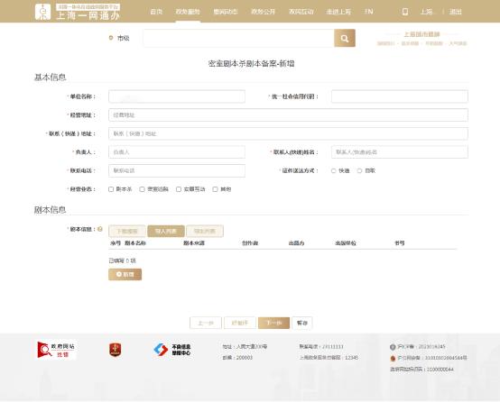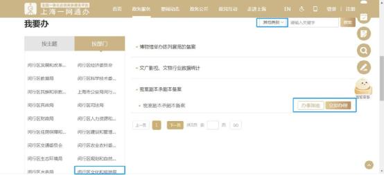 路径:“一网通办”——选择“闵行区”——按部门选择“闵行区文化和旅游局”——选择“其他类别”——选择“密室剧本杀剧本备案”。