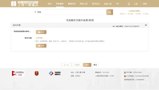提交成功后,将剧本(含故事背景、剧情、角色介绍、人物对白)自行刻录光盘,提交至闵行区行政服务中心综合窗口,材料齐全并符合申报要求,予以备案。