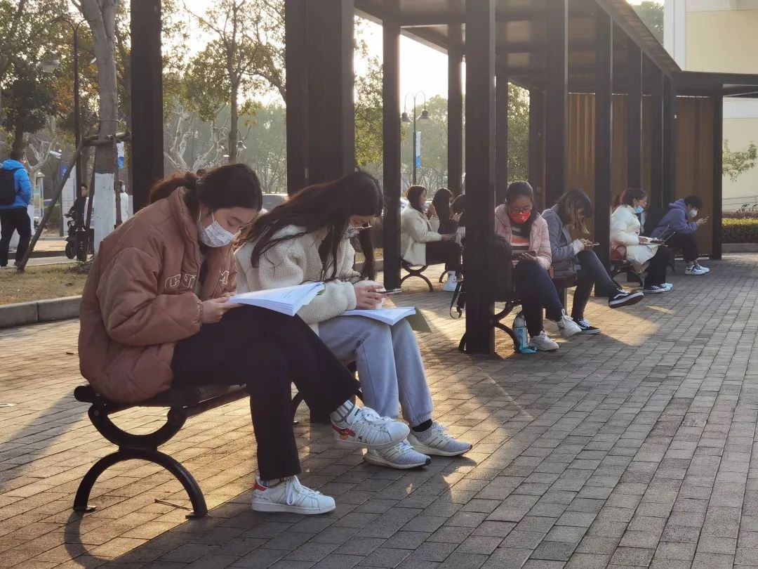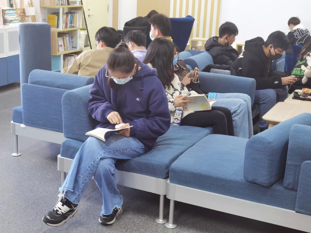暂时无法“流动”的上外同学们安心度过这段等待的时光。有人在自习区捧起课本悉心研读,有人在教室里和伙伴们一起分享剧集,有人暂坐在木椅上与身旁的朋友交谈……