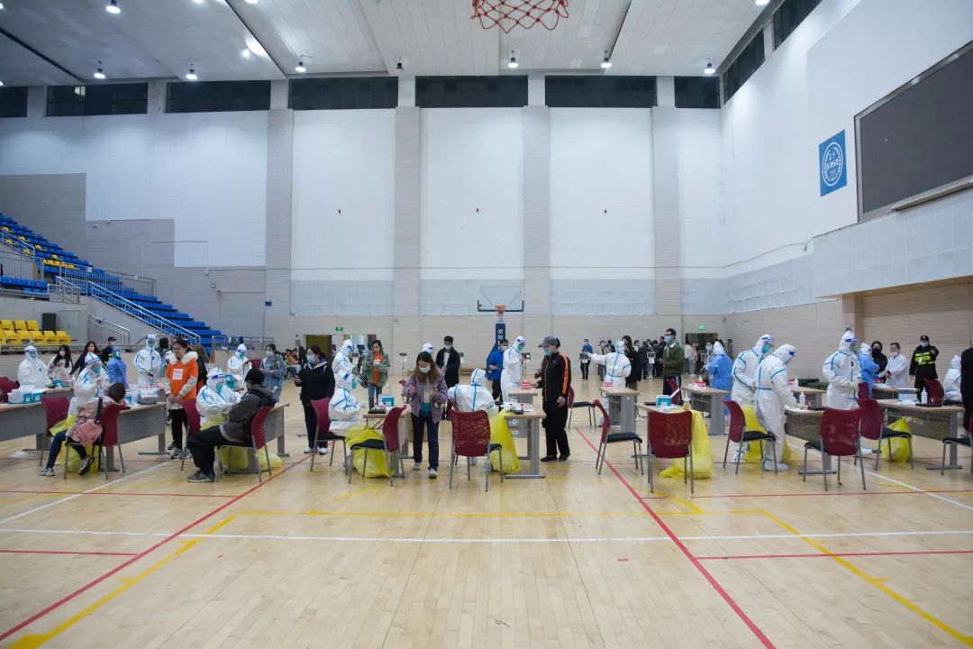 3月2日下午三点起,上外虹口校区首先启动核酸检测工作,在校师生积极配合学校指挥,在检测点外有序排队,完成检测的师生也陆续回归各自学习和工作中。