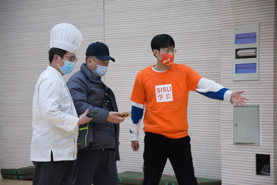 与此同时,学校也第一时间紧急联系了食堂和松江大学城其他兄弟院校,安排好了师生的餐食配送和集中供应。前来支援的食堂工作人员有序地在南门进行体温监测,刷卡进校为同学们准备、配送晚餐。“今夜,松江高校为我们炒饭!”上外师生的朋友圈里流传起了这样的一句话。
