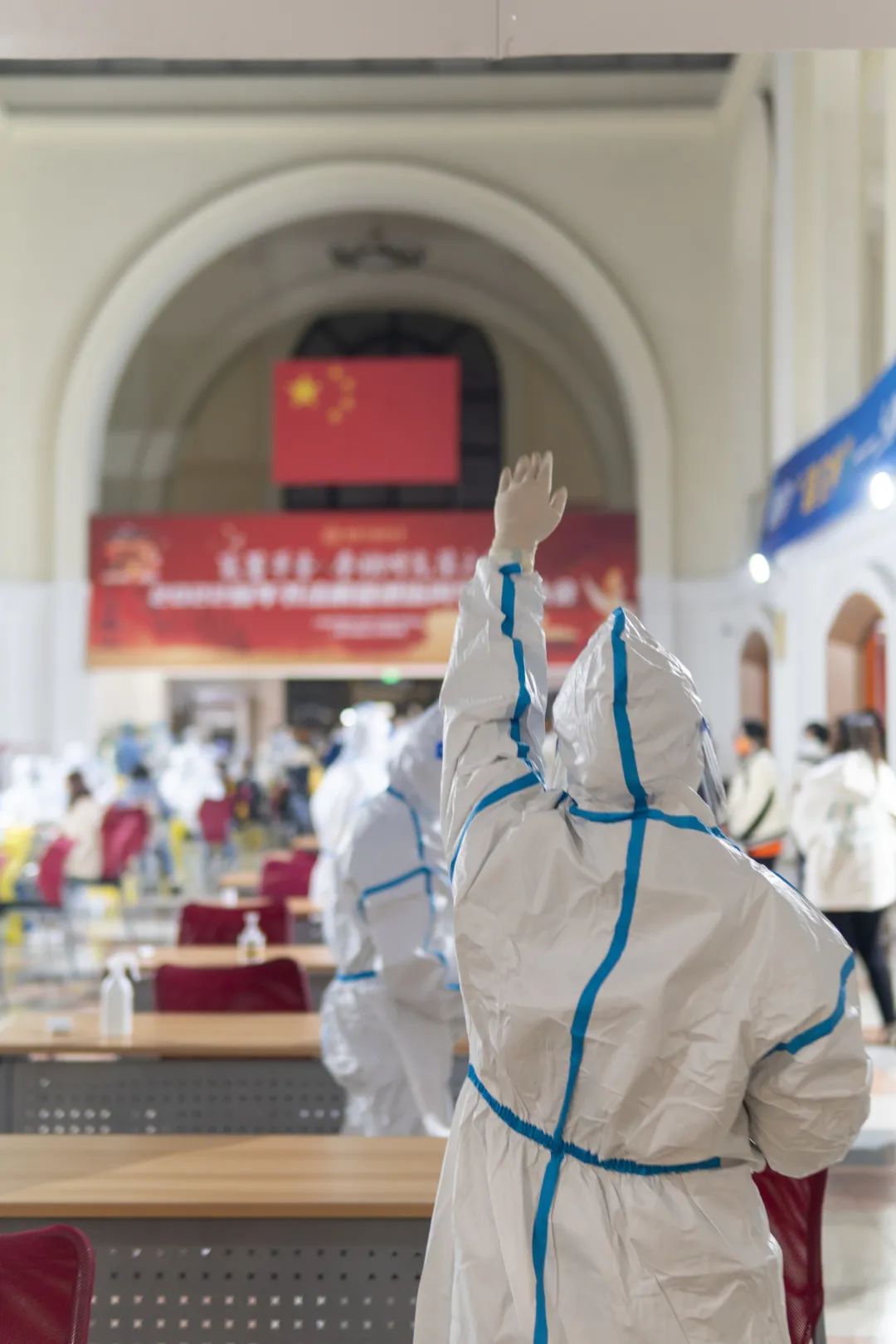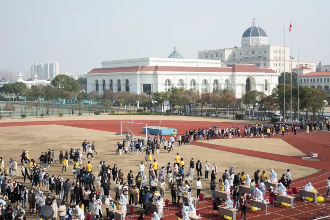 身着防护服的“大白”们高效专业地进行采样工作,加之师生志愿者们全力协助,尽管检测点外排起长队,最快的时候,从排队到完成检测,实际用时不到十分钟。