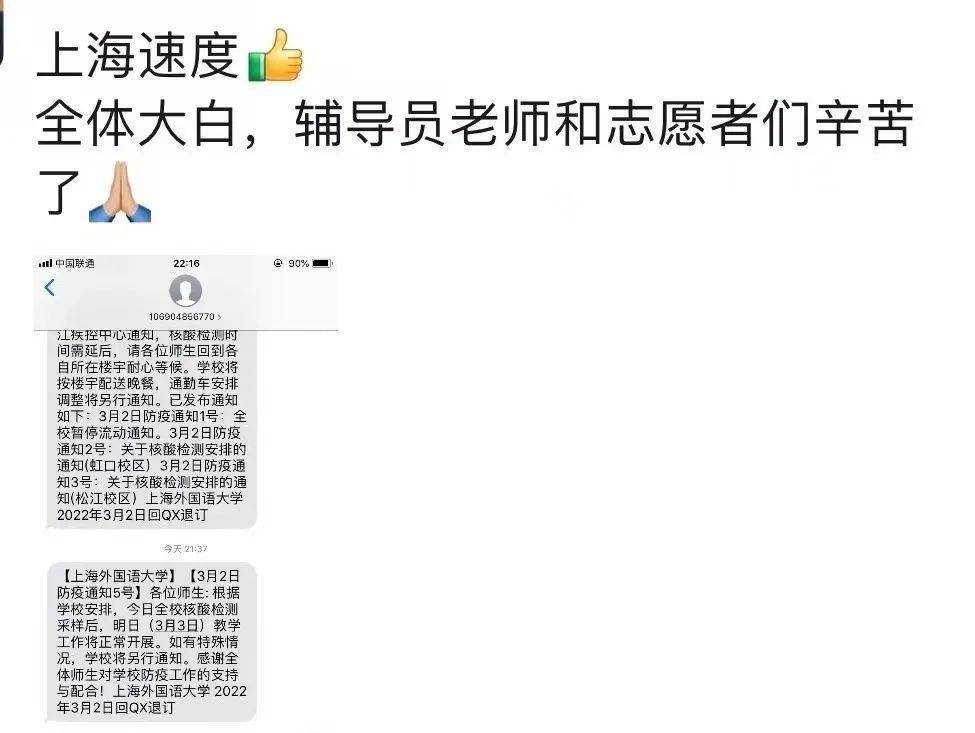不少师生自发在朋友圈、微博等平台向辛苦付出的医护人员、志愿者、工作人员表示感谢。这一天是上外人的共同记忆,默契、高效、暖心、难忘。
