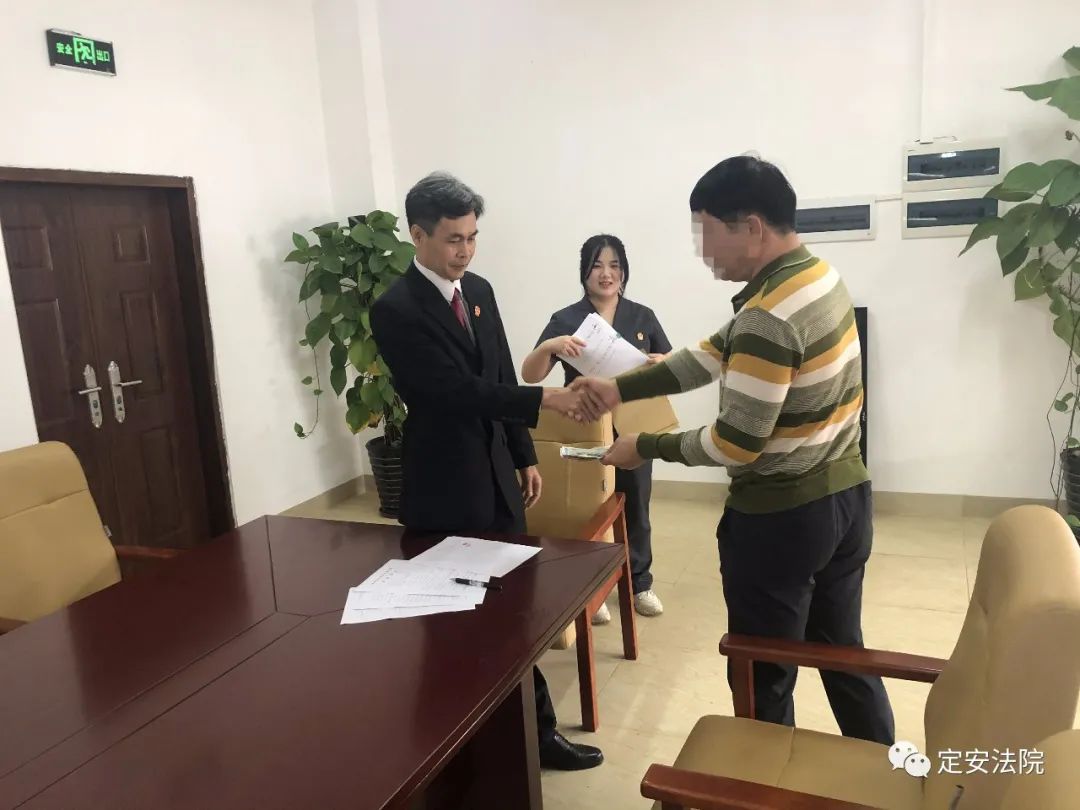 活动现场,群众王某闻讯找到龙门法庭法官梁振军申请立案,诉说着自己卖红砖给被告杨某,但货款却迟迟未付一事,法官梁振军在了解到具体案情之后,立即找到被告杨某,经过一番耐心调解、以情释法,不断说服劝导,最终被告杨某当场履行了7200元的货款,并主动承担本案的诉讼费用,原被告双方当场握手言和。