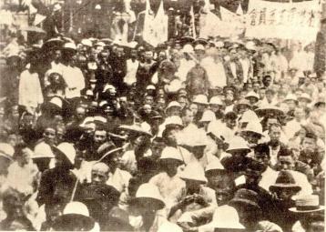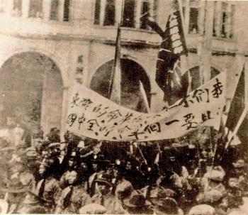 6月23日,省港罢工工人10万多人在广州举行声热浩大的示威游行,在沙基遭到帝国主义军警的武装袭击,激起省港工人无比愤慨,反帝斗争迅猛发展起来。