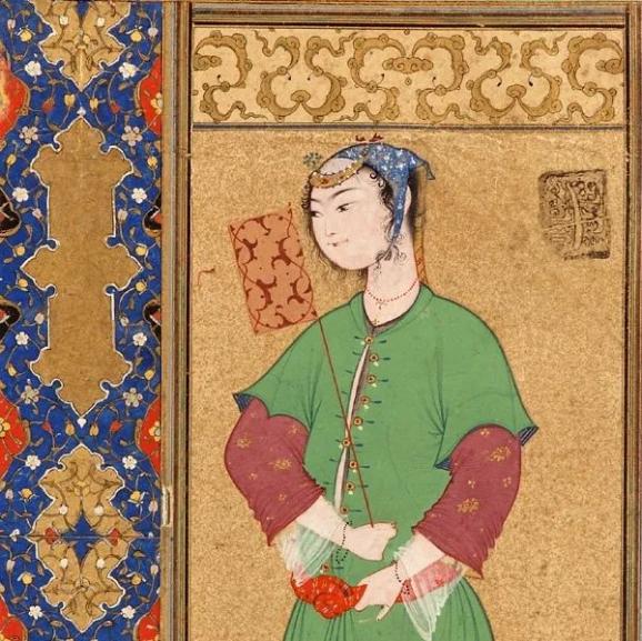 17世纪初,纸本水彩描金细密画,20.5 x 10 cm