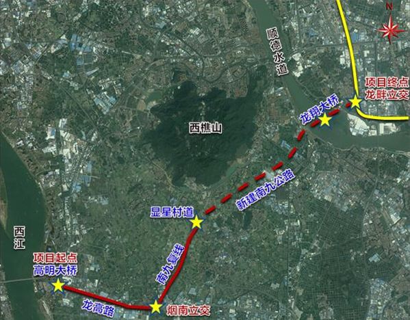 龙翔大桥及引道工程是佛山一环西拓环线南环段的重要组成部分,西联高明区,北接南海区西樵镇,是禅城、南海、高明、三水四区之间环形快速通道的连接线。
