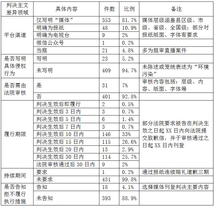(三)法院适用赔礼道歉责任判决主文的差异归纳