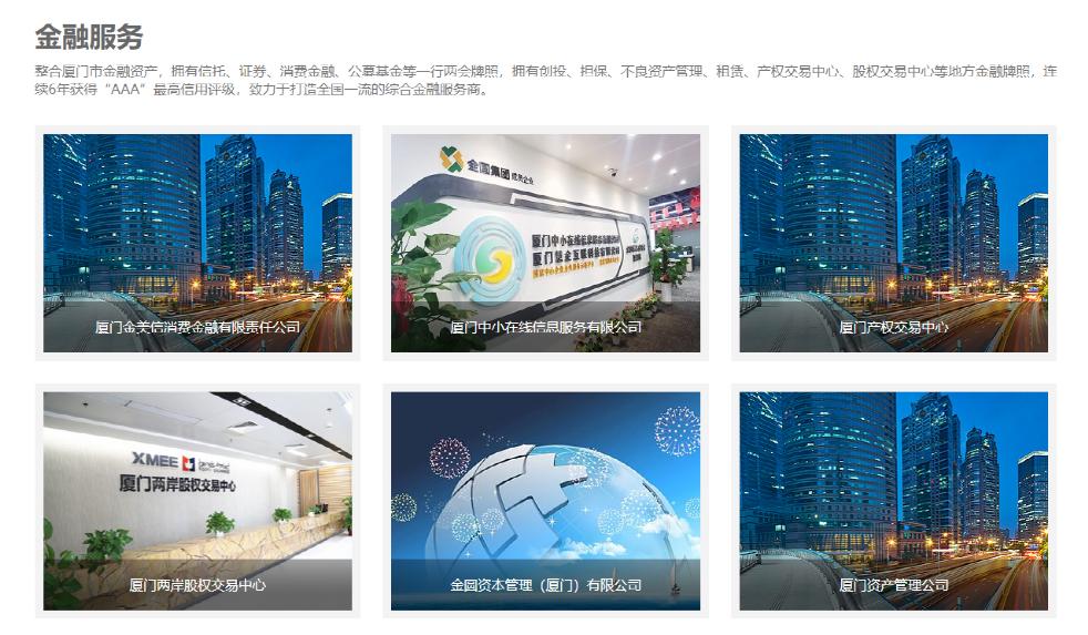 截至目前,厦门金圆是拥有厦门唯一信托法人厦门国际信托、全国首家两岸合资证券公司金圆统一证券、全国首家两岸合资消费金融公司金美信消费金融、福建首家两岸合资公募基金公司圆信永丰等一行两会金融牌照,以及厦门市产业投资基金管理人厦门创投、福建省最大政策性担保机构厦门市融资担保、厦门市首家经银监会备案的地方AMC厦门资管、区域金融要素市场厦门产权交易中心、两岸股权交易中心等地方金融牌照。