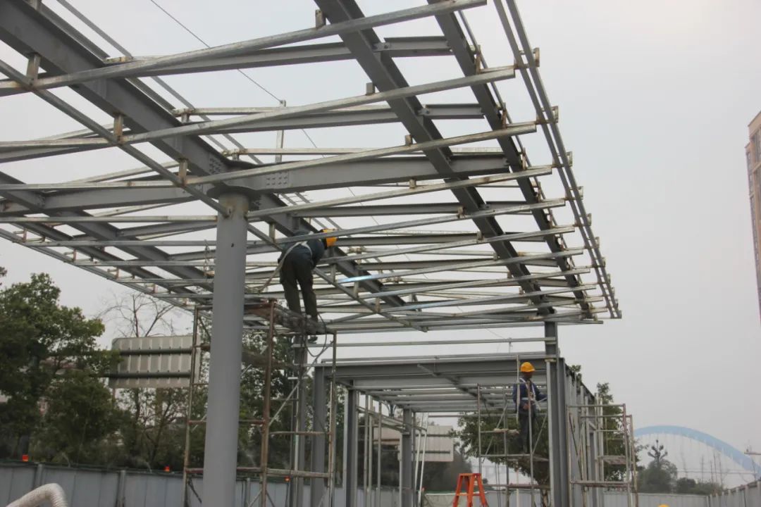 3月2日,记者在T2线半岛大院站点看到,该处站点已被围挡围了起来,围挡里几名工人正在作业,站点钢架结构已初见雏形。据四川川南轨道交通运营有限公司工作人员介绍,该站点建设目前已进入主体修建尾声,预计3月底完成主体修建,拆除围挡。