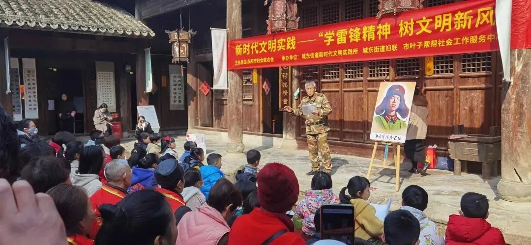 近日,东阳市妇联、东阳市城东街道新时代文明实践所、东阳市城东街道妇联和东阳叶子帮帮社会工作服务中心的志愿者与40多位困境儿童和回乡学生,在解放军雷锋生前所在连连长虞仁昌老家——东阳李宅社区,开展“学雷锋精神,树文明新风”新时代文明实践主题活动。