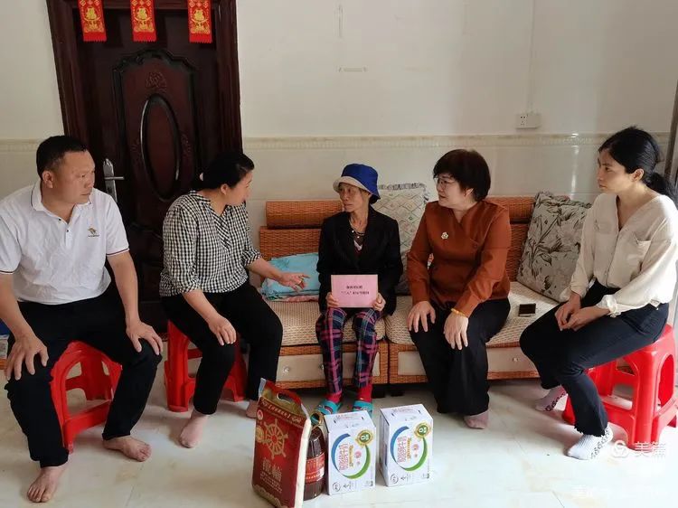发车仪式结束后,杨娟代表省妇联妇女发展部党支部,与保亭县加茂镇共村党支部代表黄强、刘丽红一起入户走访慰问共村困难妇女吉某,为她送去“三八”节日祝福和牛奶、油、米等慰问品及1000元慰问金。
