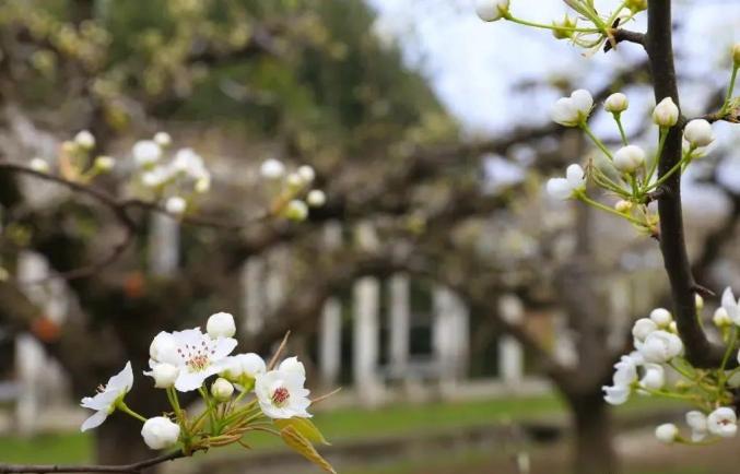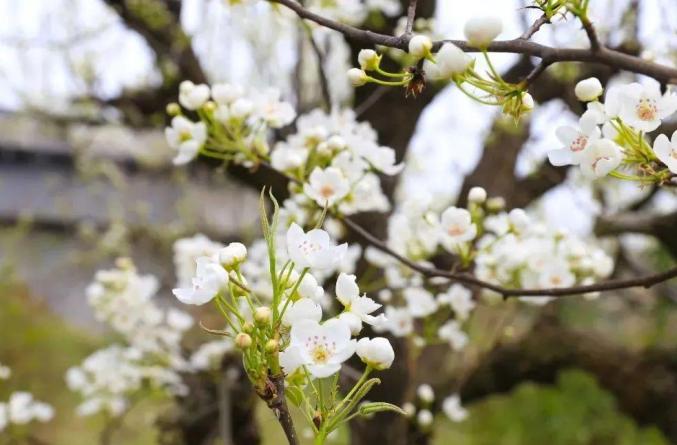 春风荡漾,梨树花开,压枝欲低,白清如雪,素洁淡雅,风姿绰约。